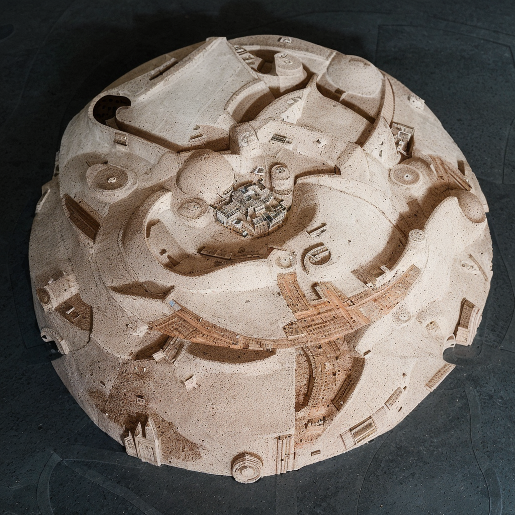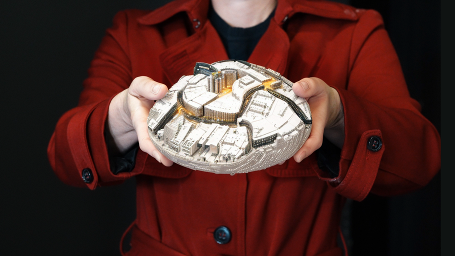 two hands hold a model city :inpainting stable diffusion
