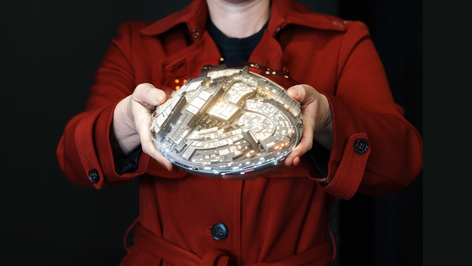 These should be projected. perhaps in a kind of beauiful sci fi werbung aesthetic.