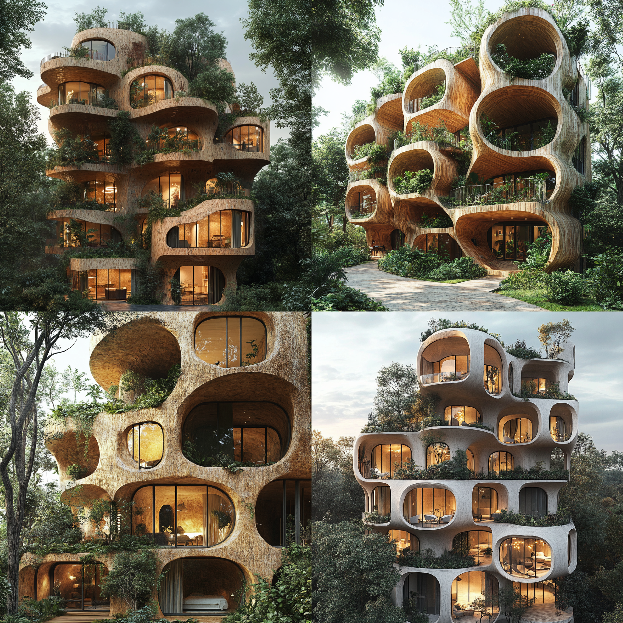 Prompt: an apartment building made of organic materials for animals