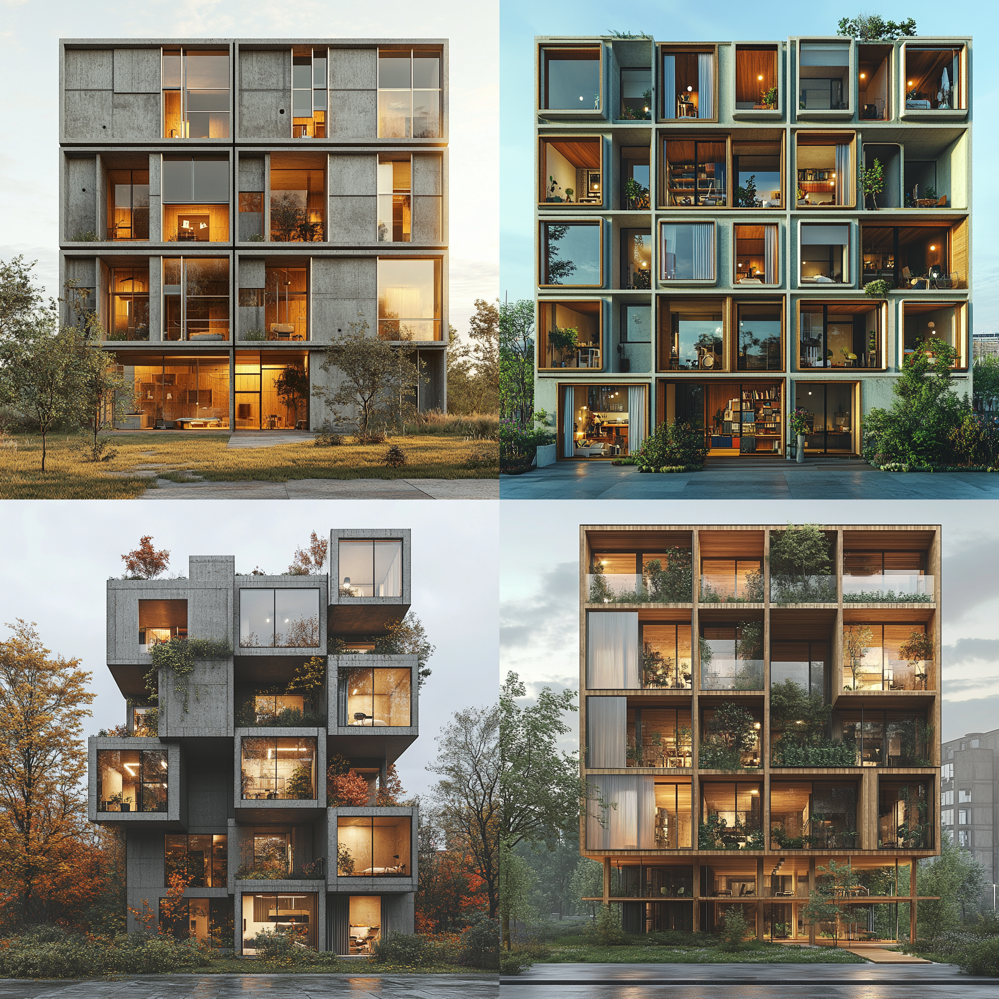 Prompt: an apartment building made out of pre-fabricated panels which could be mass produced an easily assembled to create living space for workers for a brown coal power station