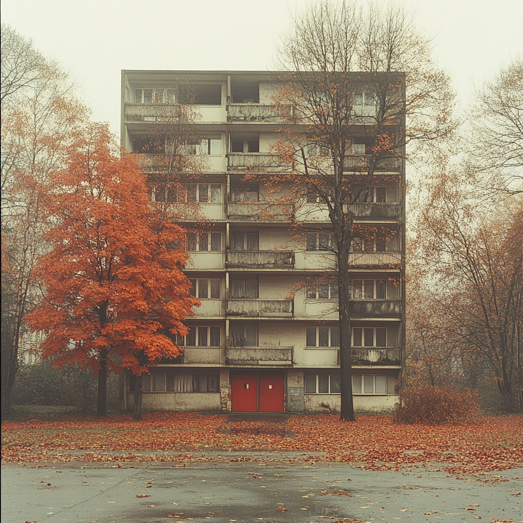 Prompt: an apartment building made out of concrete slabs which could be mass produced in a socialist country