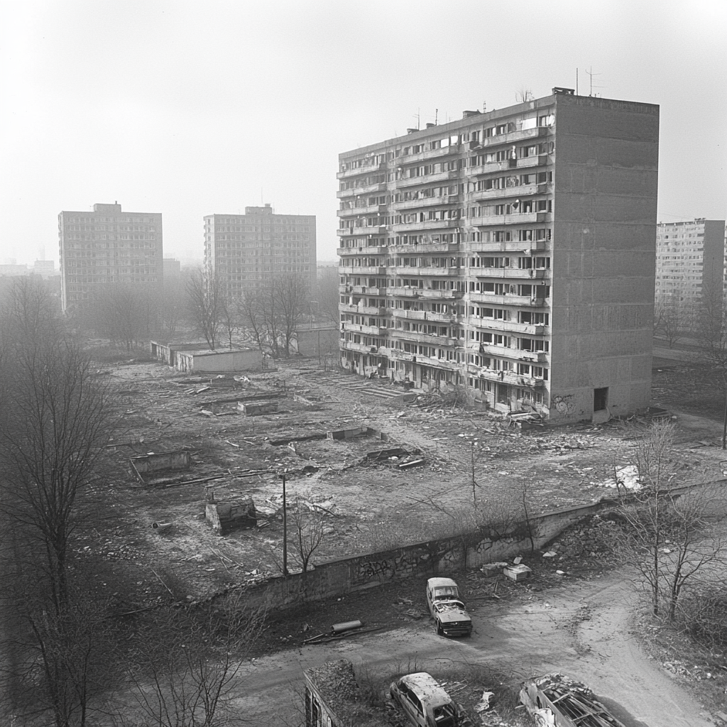 Without using the words Plattenbau I try to get AI to create one"